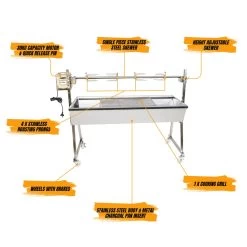 Portable Briefcase Rotisserie Spit Stainless Steel Body – Very Portable (folds Up) – PRS-3065