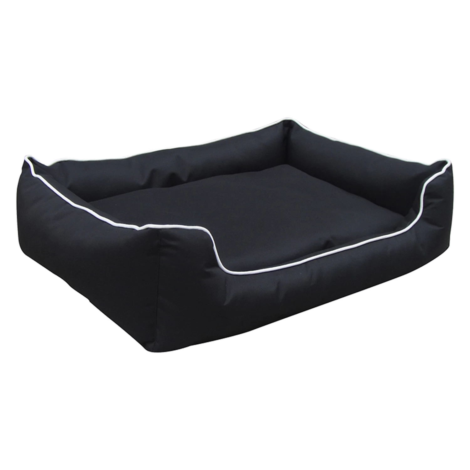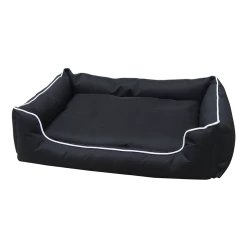 This bed for medium-sized dogs measures L120cm x 100cm x H25cm. It’s made from an extra-tough and waterproof 600 denier Oxford canvas, which is durable enough for outdoor use yet comfy enough to provide plenty of pleasant dreams. The fabric comes in a black canvas with white piping, a handsome combination for most any existing colour scheme.