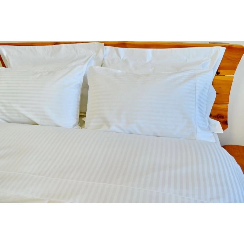 - 1250 TC White Stripe King Cotton Bed Sheet Set