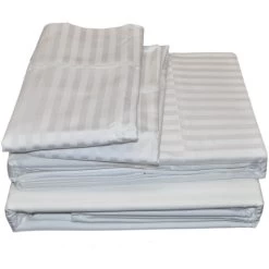 - 1250 TC White Stripe Queen Bed Sheet Sets w/ Cotton