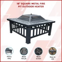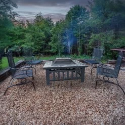 This attractive square fire pit is a must for any backyard or patio. You’ll draw a crowd when you throw on mouth-watering steaks and delicious kabobs on this metal fire pit. Your gatherings will be a hit!