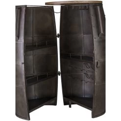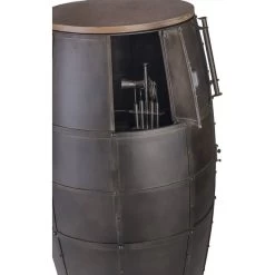 - 80 Bottle Iron & Wood Barrel Bar Wine Rack Cabinet