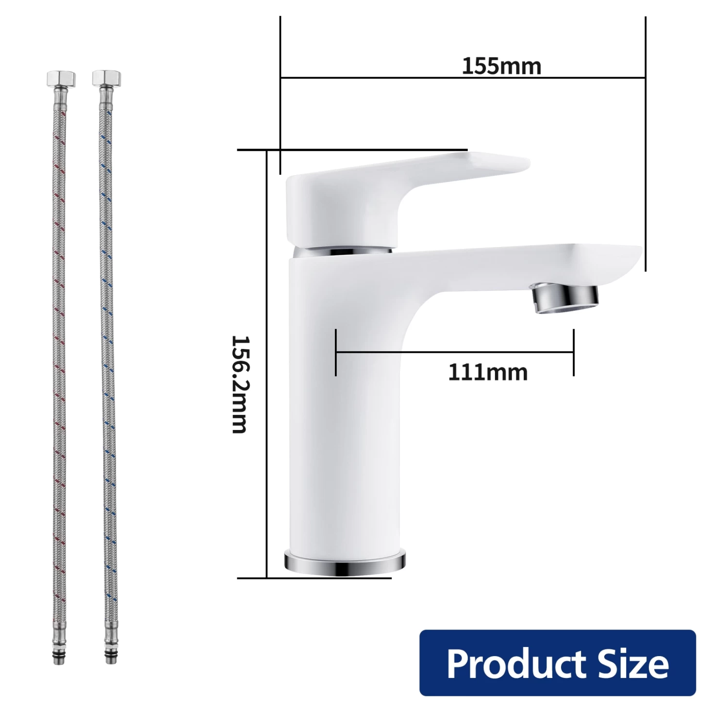 - Two water inlet (hot & cold) tubes included