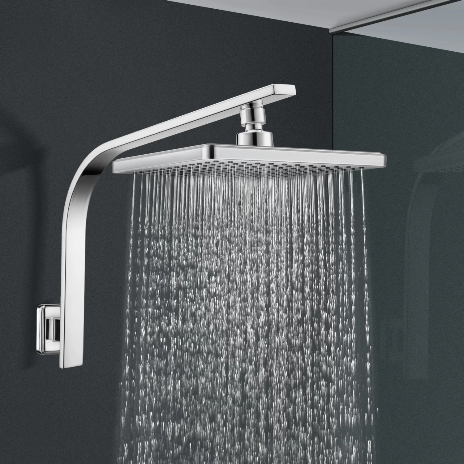 - 8 inch ABS Square Chrome shower head with wall mounted gooseneck shower arm