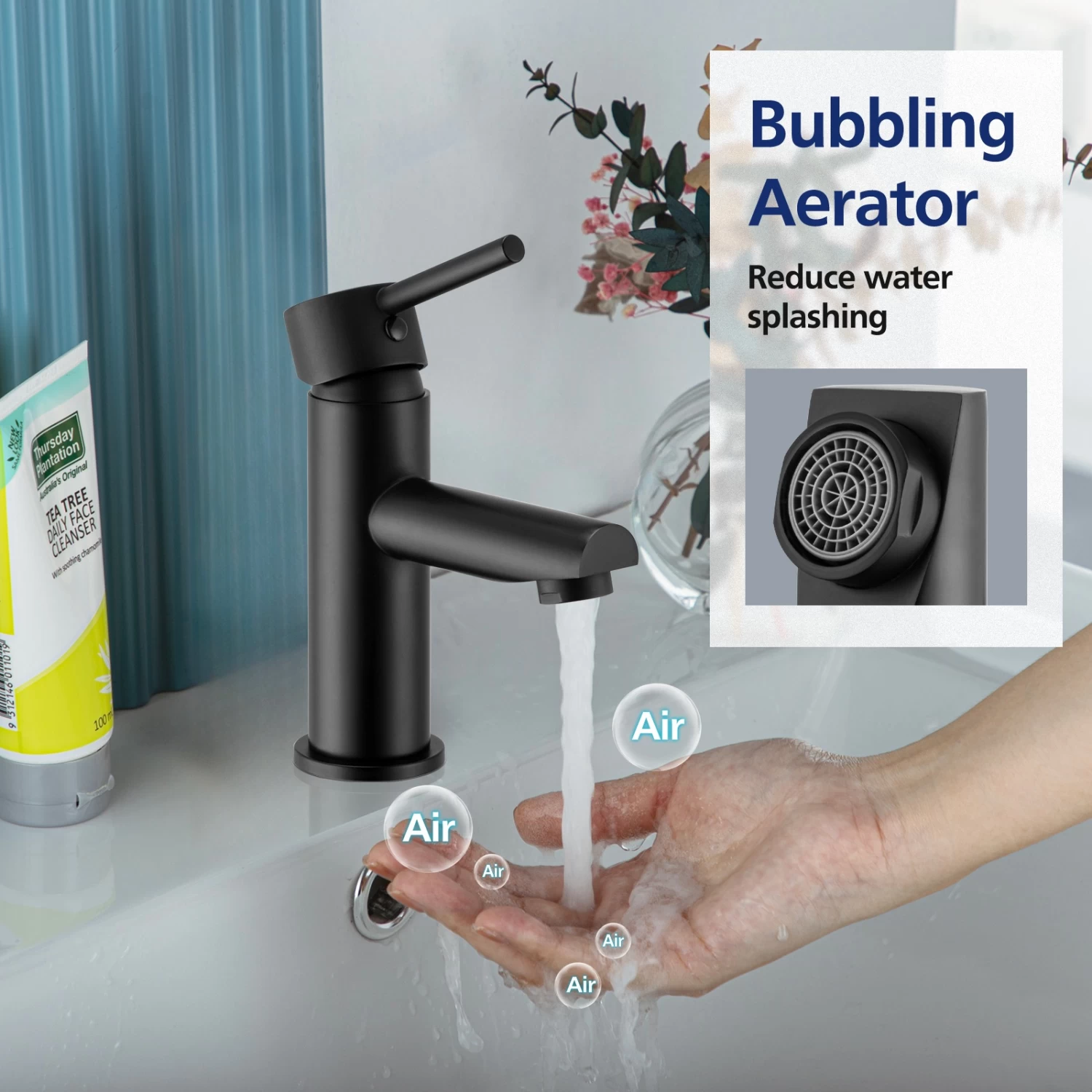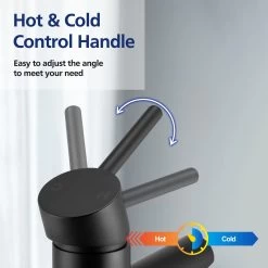This black finished basin mixer tap features a user-friendly flick design that is easy to install, with complete attachment sets and accessories included. With its durable solid brass construction, this mixer tap ensures smooth and long-lasting operation.