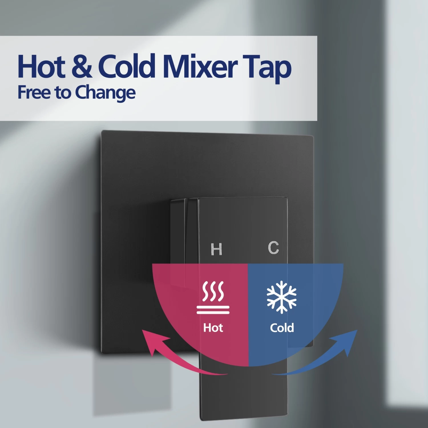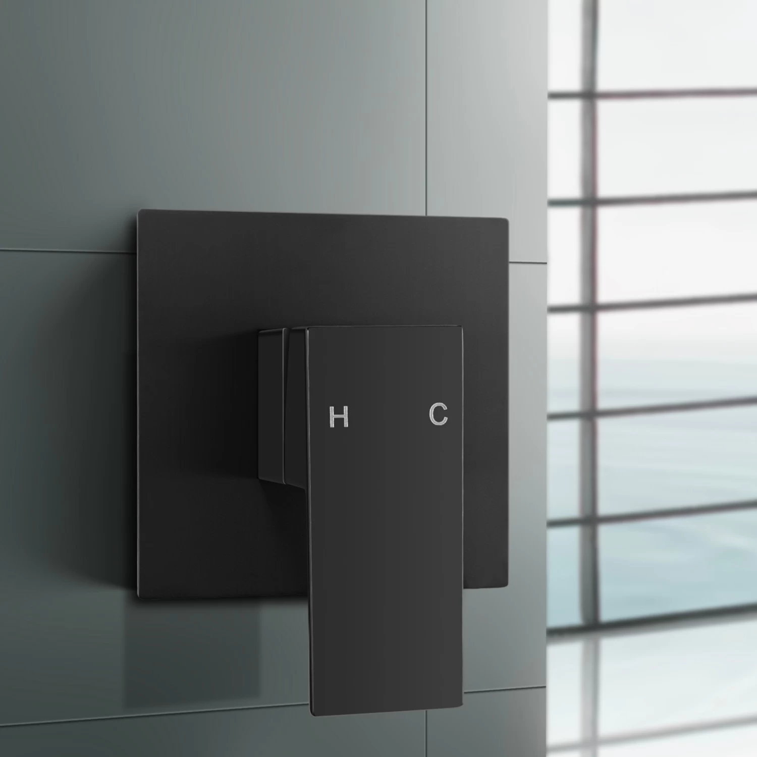 Square Shower Bath Mixer Tap Wall Mounted Black