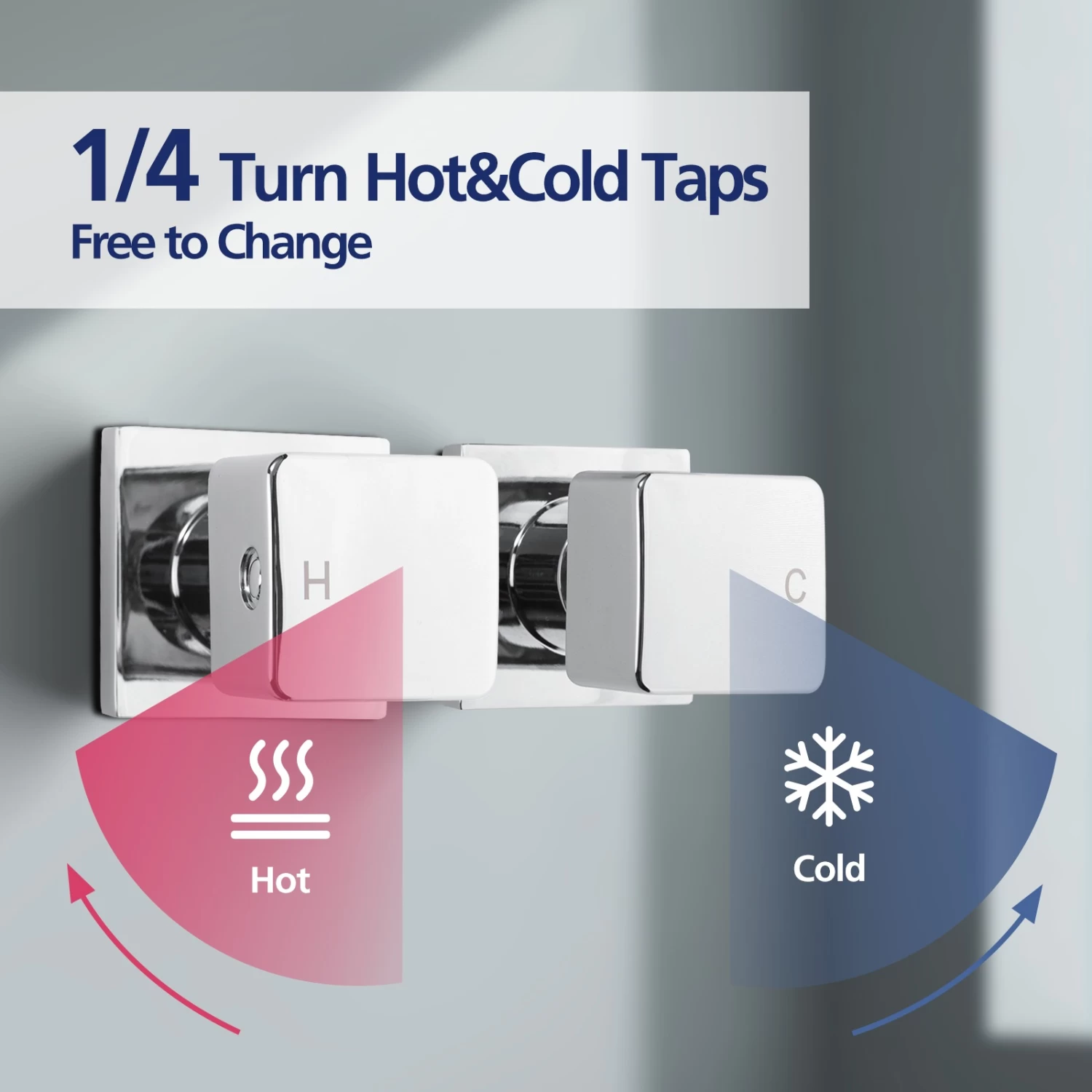 - Wall Mount Shower Bathroom 1/4 Turn Taps in Chrome