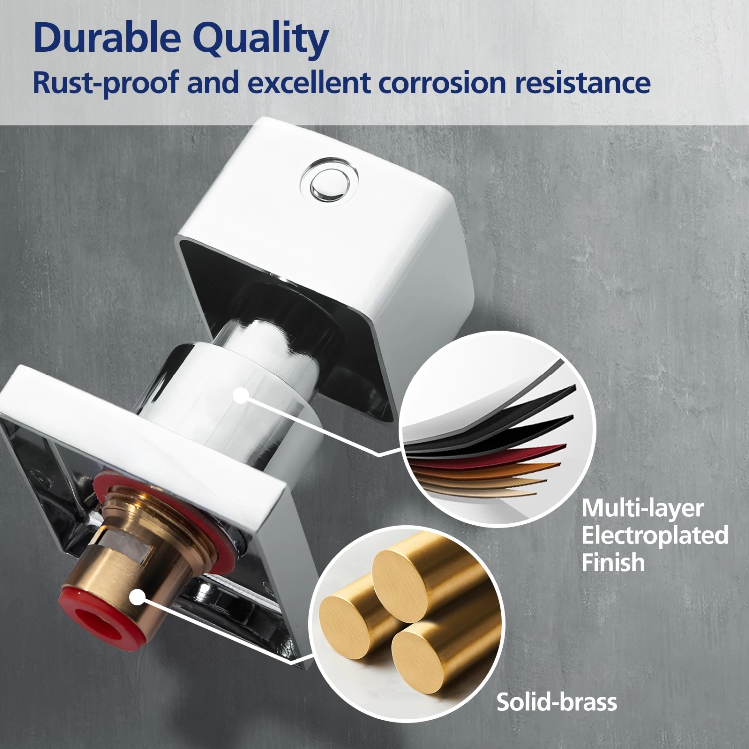 Effortlessly stylish and exceptionally functional, these chrome plated solid brass tap fittings are sure to impress. With a contemporary square shape that is elegant and refined, these taps feature a practical 1/4 turn and a polished finish to ensure that your bathroom brings you peace of mind. Wall mountable and suitable for bath, shower and basin mixer faucets, they meet all Australian Standards.