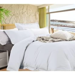 Brighten up your bedroom with this simple but stylish quilt cover and pillowcase set. This set is great because as well as a quilt cover it also includes two matching pillowcases. The Bamboo/Egyptian cotton fabric makes the covers thick enough for them to remain comfortable throughout the night and with a 400 thread count, these covers will provide long-term quality. If you want a homely quilt cover for your bed then this is a great set for you.