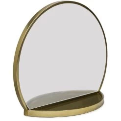 - Antique Round Table Wall Mirror with Shelf in Brass