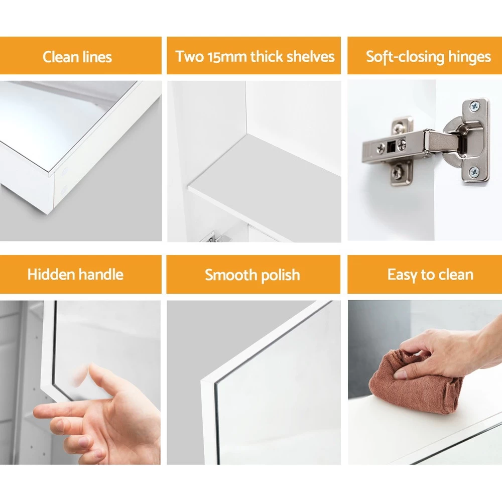 Finished in high gloss PU and made of quality 15mm MDF material, our Storage Mirror Cabinet is designed to be longlasting and durable with a touch of class. The twin soft-closing doors open to lots of storage space within the cabinet with adjustable shelves to suit your various storage requirements for toiletries, medicine and other bathroom essentials. Not least, the pencil-edge handles make this Storage Cabinet uniquely stylish whilst the crystal-clear mirrors reflect wide coverage with absolute clarity