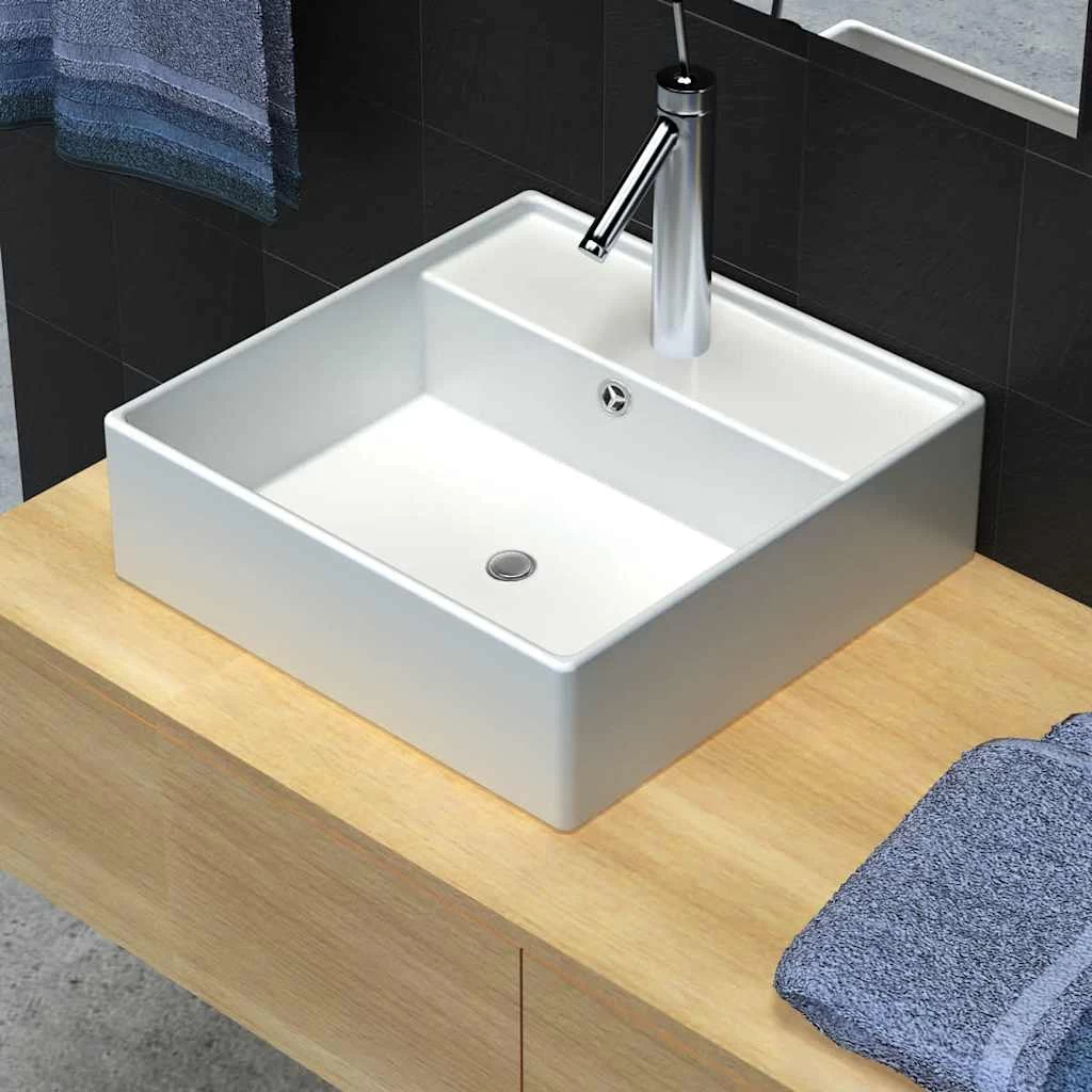 This square wash basin, made of premium ceramic, will be a stylish addition to any bathroom, washroom or powder room. Its high gloss finish brings a modern yet elegant design.