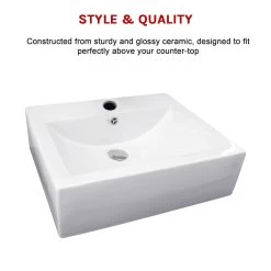Get that spa-like feeling right in your own home! This Ceramic Above-Counter Rectangular Basin will be a stylish addition to your bathroom and with the Della Francesca name you are assured of lasting style and strength.