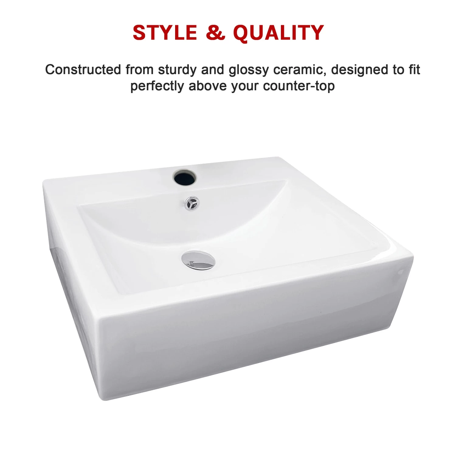 This chic designer ceramic above-countertop rectangular basin is perfect for the individual bathroom renovation or for the housing contractor.