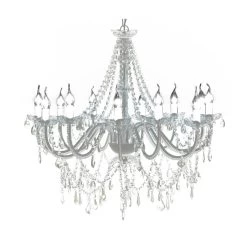 This gorgeous chandelier with 1600 different crystals and 12 flames is entirely made of metal and real glass crystals (no cheap plastic parts and stones) which provides you with a unique elegance. The trendy pendant has a royal crystal design. The high-quality colourless glass gives real clarity and shines with high light (even from other light sources), in the spectrum there will be a magnificent play of colours. This magnificent chandelier is mesmerizing with its 12 light sources and its polished prisms which provides you with a magical sparkle of pleasant and warm light. A real eye-catcher in any environment and ideal for private and industrial purposes.