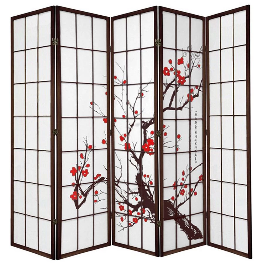 Our Brown Cherry Blossom 5 Panel Room Divider Screen features a stylish 5 panel wooden frame finish, quality two-way metal hinging to fold in either direction and weighs 9 kilograms for easy moving.