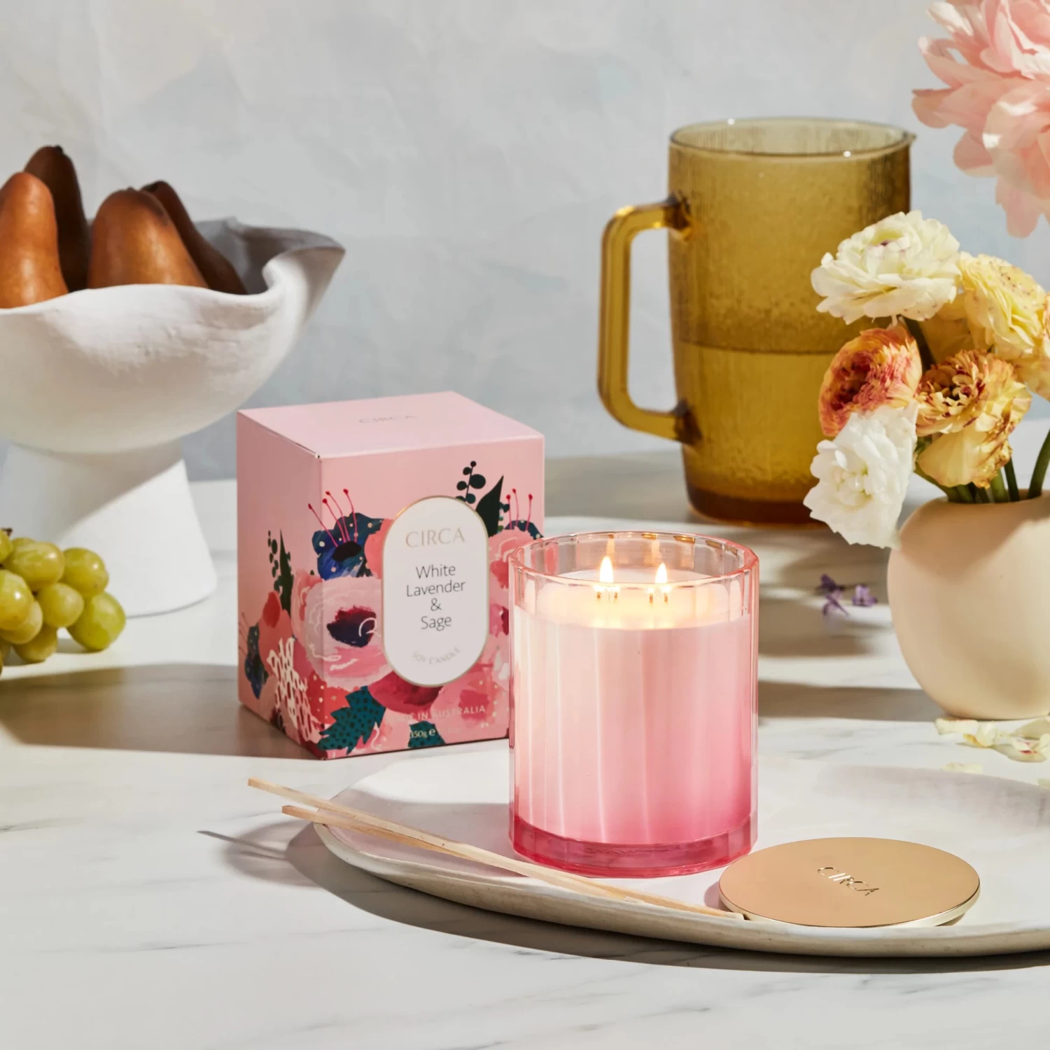 Your home will feel like the fresh air of a morning walk with the Circa White Lavender and Sage 350g Scented Soy Candle! Handmade in Australia with soy blend wax and high-quality fragrance oils, this candle features notes of lavender, cool wafts of sage and a warm sunrise of amber with a touch of musk. Presented in a stunning printed box, this candle makes an uncomplicated gift for a loved one.