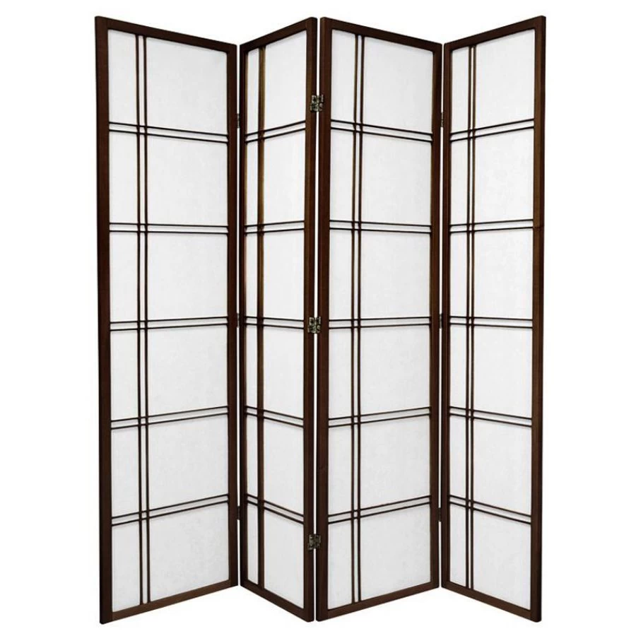 Our Brown Cross 4 Panel Room Divider Screen features a stylish 4 panel wooden frame finish, quality two-way metal hinging to fold in either direction and weighs 8 kilograms for easy moving.
