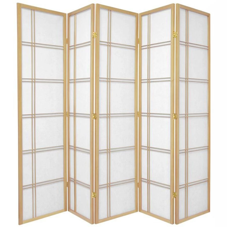 Our Natural Cross 5 Panel Room Divider Screen features a stylish 5 panel wooden frame finish, quality two-way metal hinging to fold in either direction and weighs 9 kilograms for easy moving.