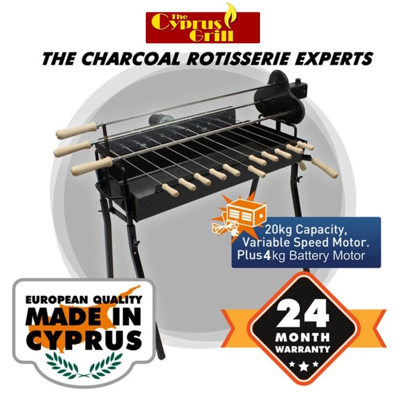 Cyprus Grill Deluxe Auto (Black) Souvla Package Deal with 20kg Variable Speed Motor – CG-0704B