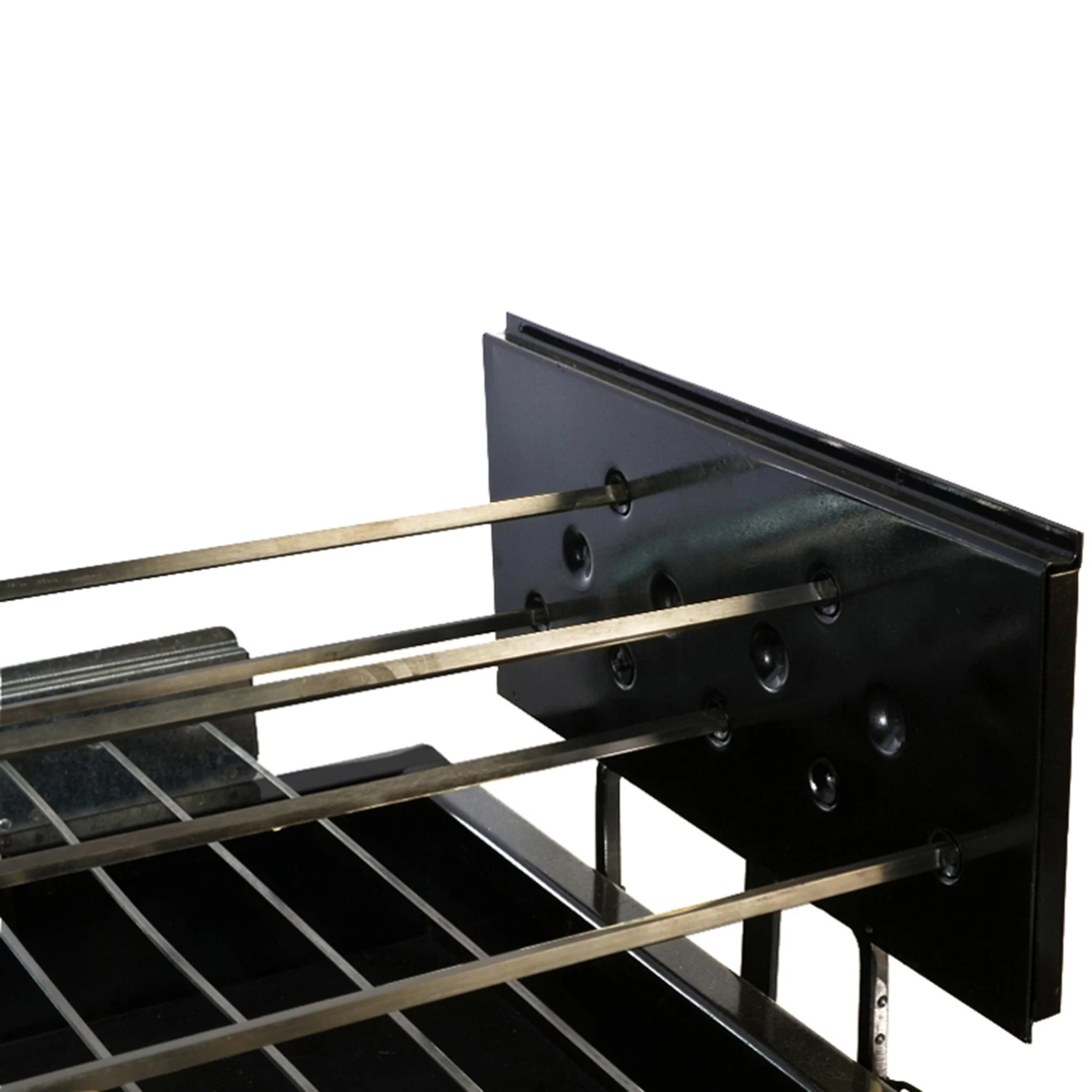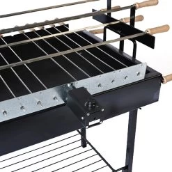 | Functional Design: | This grill has skewers rotating on different levels allowing for different types of meat to be cooked and at different temperatures. The top 5 skewers are placed on two levels, two above and three below. Great setup for cooking different meats simultaneously |