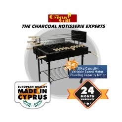 | Automatic Rotation: | This fantastic, unique technology by Cyprus Grill allows the skewers to be rotated automatically thus providing you with not only convenience but delicious, evenly-cooked meat |