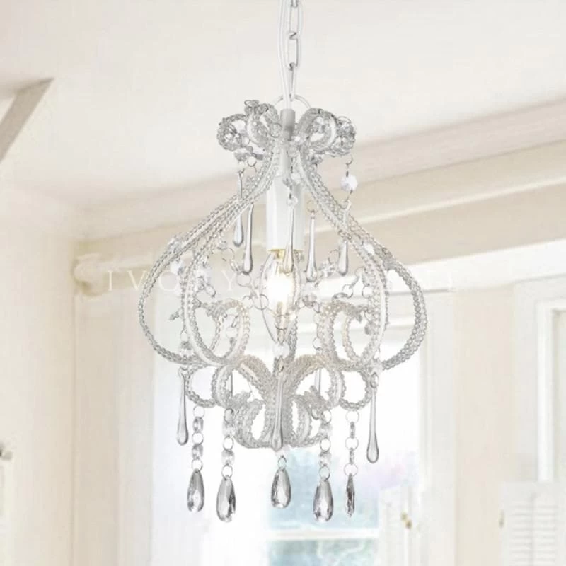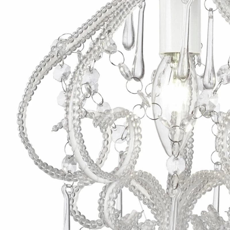 Our Darling chandelier features 1 light through the center and is detailed with two styles of crystals – almonds and angel tears. Each arm is also adorned with acrylic crystal beading, making this a truly beautiful chandelier suitable for any room in the home.