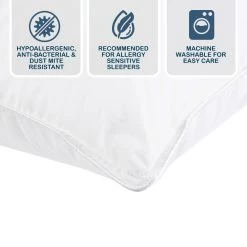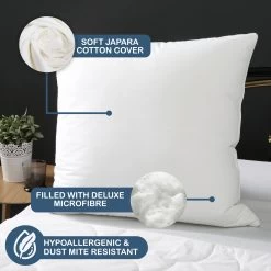 What’s more, Japara cotton is a natural fabric that is highly durable, breathable and comfortable. Like normal cotton, it is a healthy choice for quilt casings or pillow shells as it allows moisture from the body to pass through and eliminates that clammy feeling, thus giving you a more restful night’s sleep. This pillow is filled with Microfibre to provide the softness. Covered with hypo-allergenic cotton japara and impenetrable to dust mites. Size :- Stardard 46 cm x 73 cm Features :- Filled with genuine deluxe Microfibre.- Hypo-allergnic and impenetrable to dust mites.- Recommended for Asthma sufferers.- Encased in soft cotton.Machine washable.- Retains loft and odourless.Care Instructions :- Air before use.- Gentle machine wash in warm or cold water with mild detergent only.- Large commercial or industrial appliance highly recommended.- Tumble dry on low heat frequent turning.- Do not dry clean.- Regular outdoor airing is ideal for best results.Made in China.