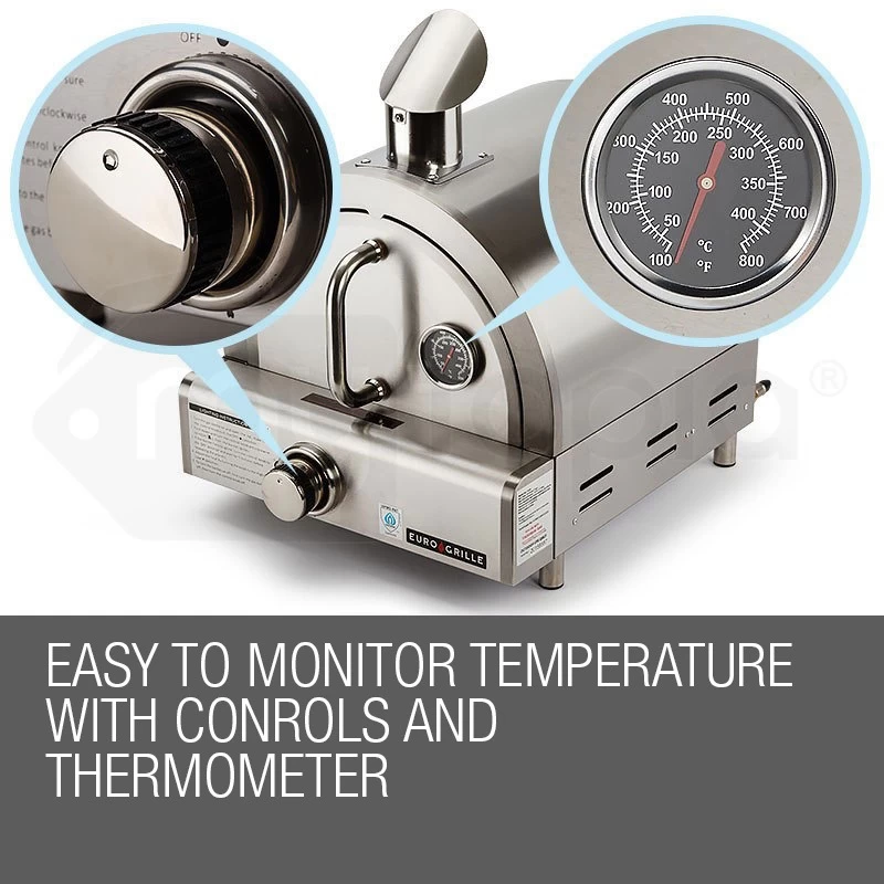 The included rack means two pizzas can be cooked simultaneously or you can put on your chef hat and try something else. The EuroGrille Pizza Oven is perfect for cooking dishes such as roast pork or chicken, beef, and fish in foil. And, you’ll always be in control with the temperature controller and inbuilt thermometer.