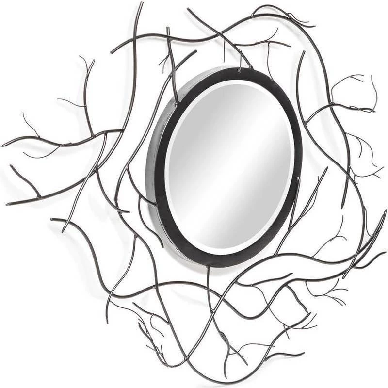 - Glass Mirror with Twig Frame Wrought Iron Wall Art