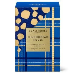 The Glasshouse Gingerbread House Festive Spiced Biscuit 760g Triple Scented Candle provides your home with the scent of a much-loved sweet and spicy delicacy. This candle fills the air with caramel, ginger, nutmeg and vanilla, just like it was baked straight from the oven. Encased in a beautiful coloured glass vessel with a lid, this triple-scented candle makes a gift anyone will love.