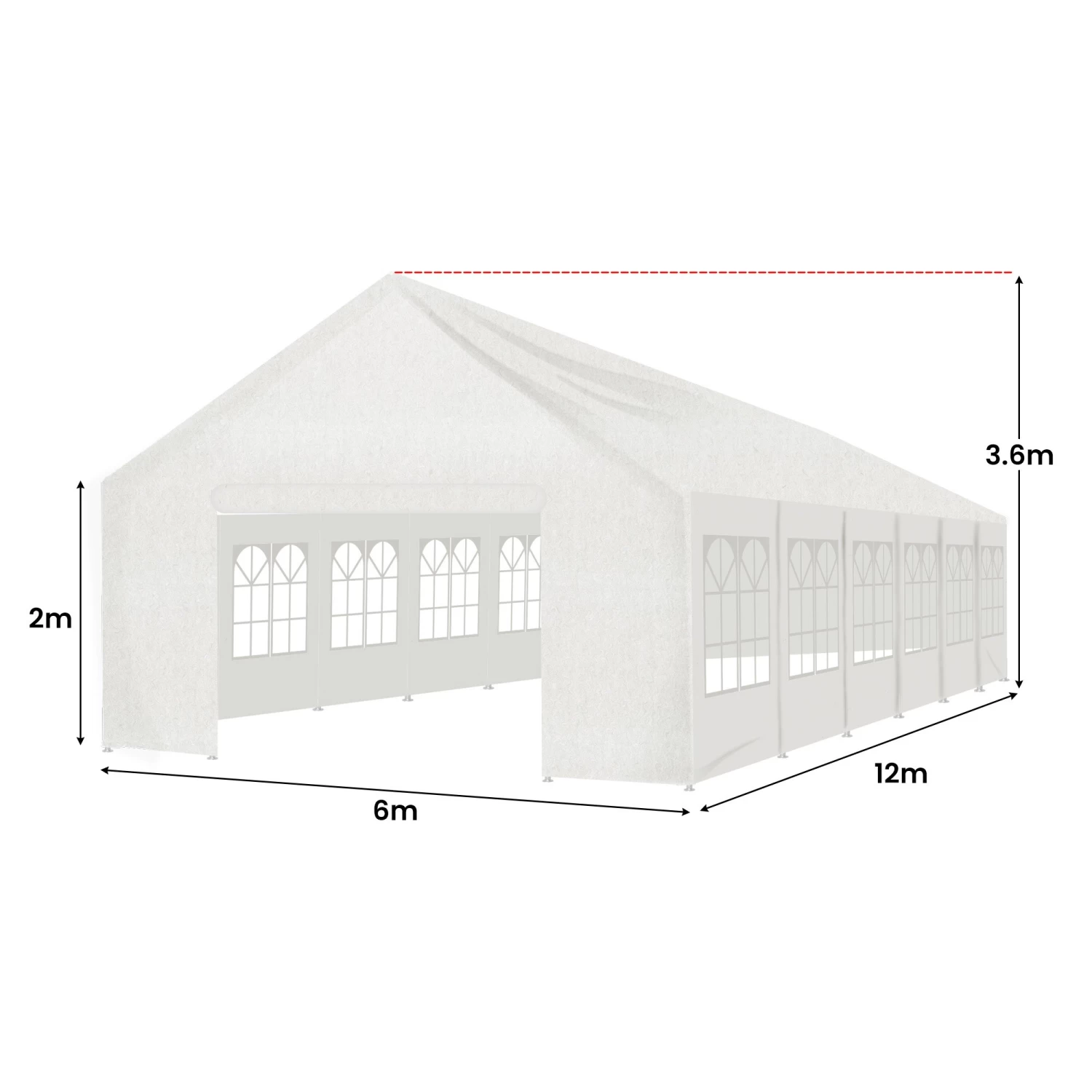 The end walls each have a zip-up door with a 1.8m clearance which you can tie open as shown or left closed.