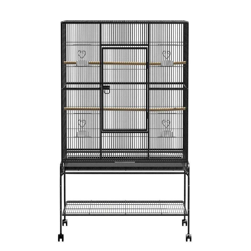 With roomy accommodation for birds of various sizes, the i.Pet Bird Cage is definitely the most comfortable roost for your fine-feathered friends. Made of high quality and durable wrought iron with a non-toxic powder-coated finish, the cage comes with a large access door with secured locks, two small food access windows, two timber perches, four food and water bowls and a removable slide-out tray for easy clean up. Better still, the palatial cage is set on a sturdy stand that features a bottom shelf for extra storage space and strong legs with castor wheels attached for easy mobility.