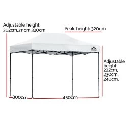 The INSTAHUT gazebo has 3 adjustable height levels to suit different height needs. It is ideal for markets, sporting events, camping, garage and yard sales, school events, trade shows and many more.