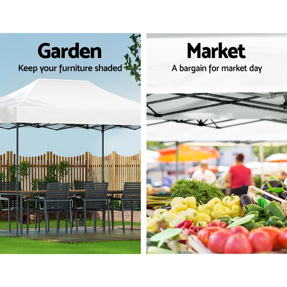 Featuring high density, long lasting PU-coating oxford fabric with effective UV and water repellent treatments, this INSTAHUT 4.5X3 Pop Up Gazebo provides a lovely ground and canopy coverage of 450 x 300cm. It is perfect for all your upcoming outdoor activities, as a sunshade station as well as a shelter for unexpected rains.