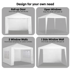 You can have this with all the walls open and just attach the walls if things get a little cold or windy ! Completely enclose the entire marquee and keep warm as well.