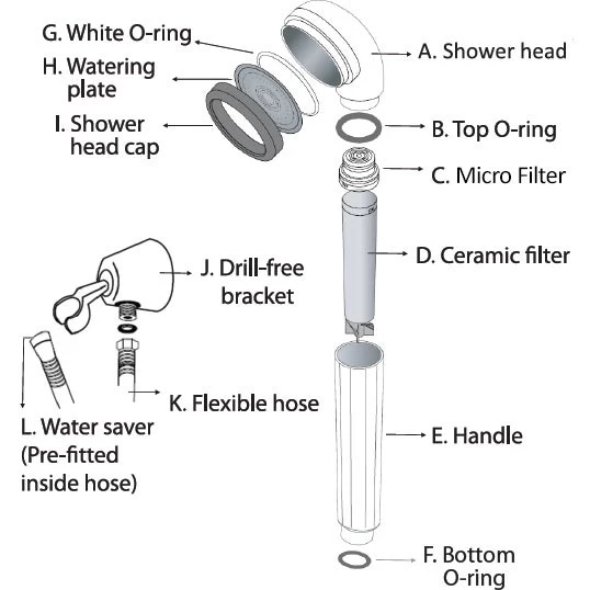 - Dual filtration system – Microfilter: Removes contaminants and particles from water- Antibacterial ceramic filter: Helps kill bacteria and remove odour