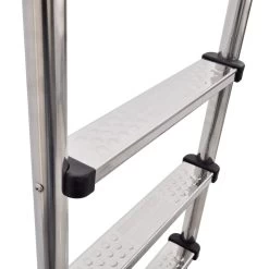 This pool ladder is made from super-strong stainless steel 304, thus it will never rust or corrode because of harsh pool chemicals. Three stairs with non-skid surface are firmly fastened to the steel poles, giving the swimmers a handy way to get in and out.