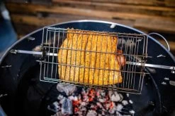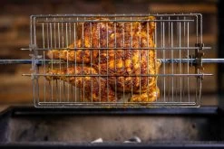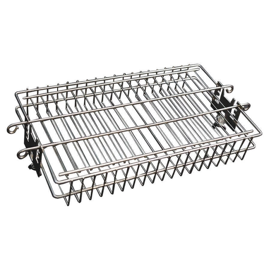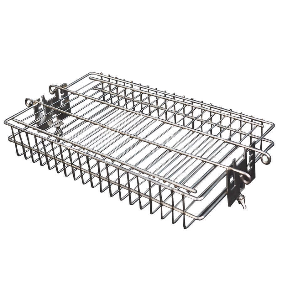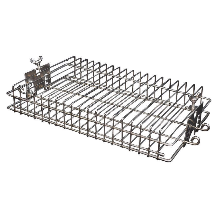High quality Spit Rotisserie Multi Use Basket suitable for BBQs and rotisseries. Great for cooking anything that you can’t cook on a skewer such as chicken wings, fish, sausages, vegetables, butterflied chicken and so much more. The adjustable width of the stainless steel basket makes this spit roasting accessory extremely versatile for a huge range of cooking options.