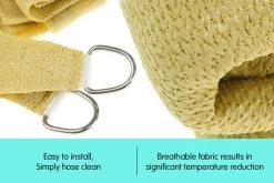 These shade sails offer the utmost in convenience; they are easy to install, and clean off with the hose. Suitable for covering patios, courtyards, playgrounds, and parking lots, etc.