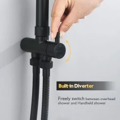 Solid brass built-in diverter with swivel holder : easy to switch between top shower head & handheld spray