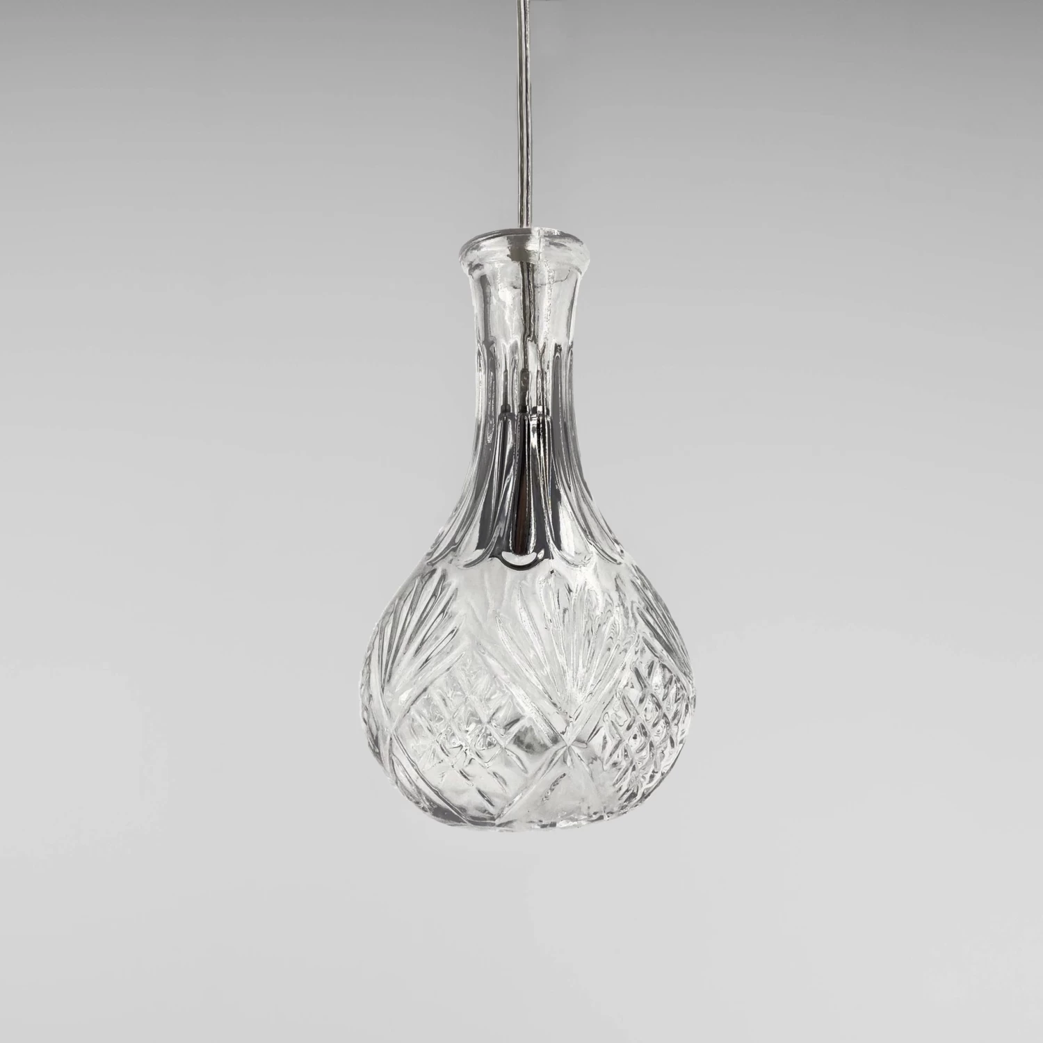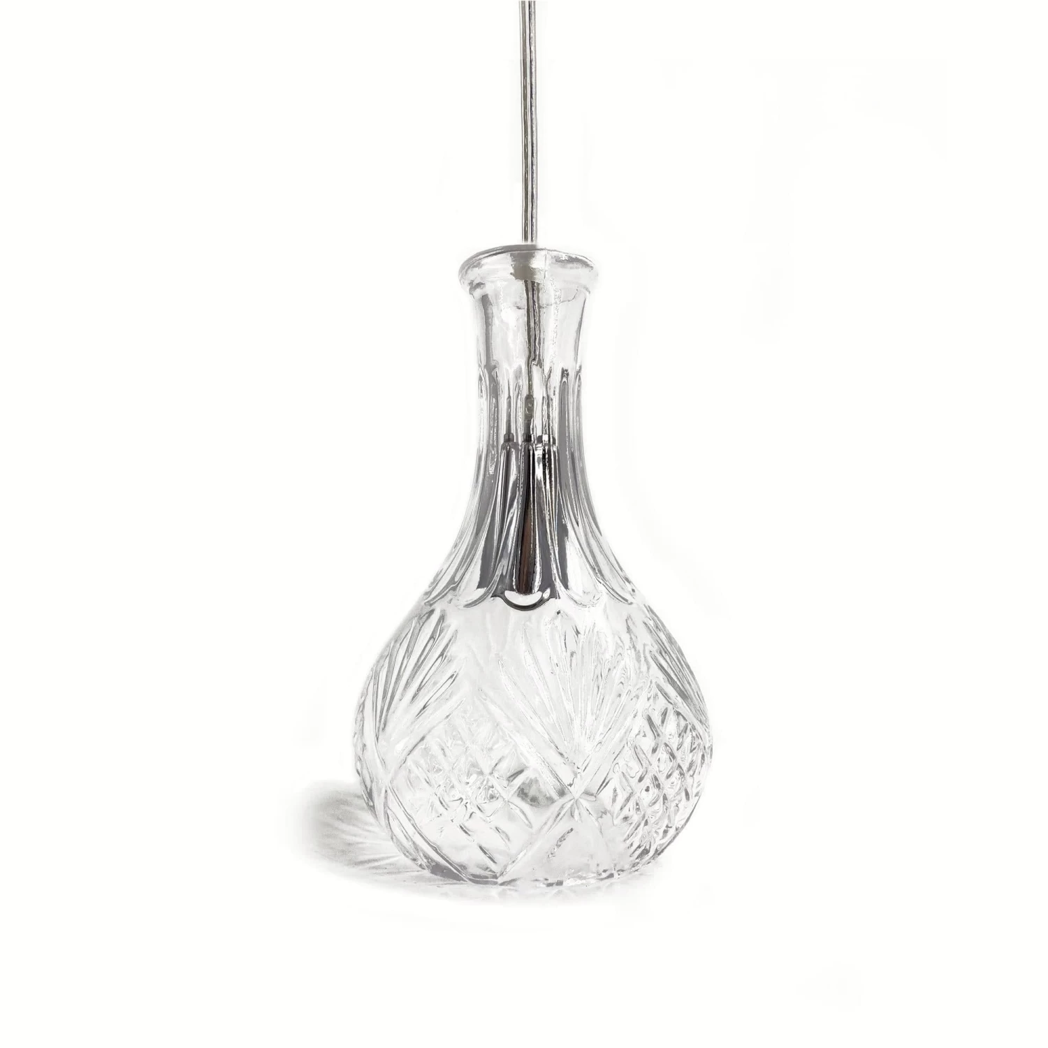 Our Sherry decanter pendant light is made from glass and comes in three different styles. It is finished off with chrome fittings and clear pvc coated wire to suit any decor or commercial application.