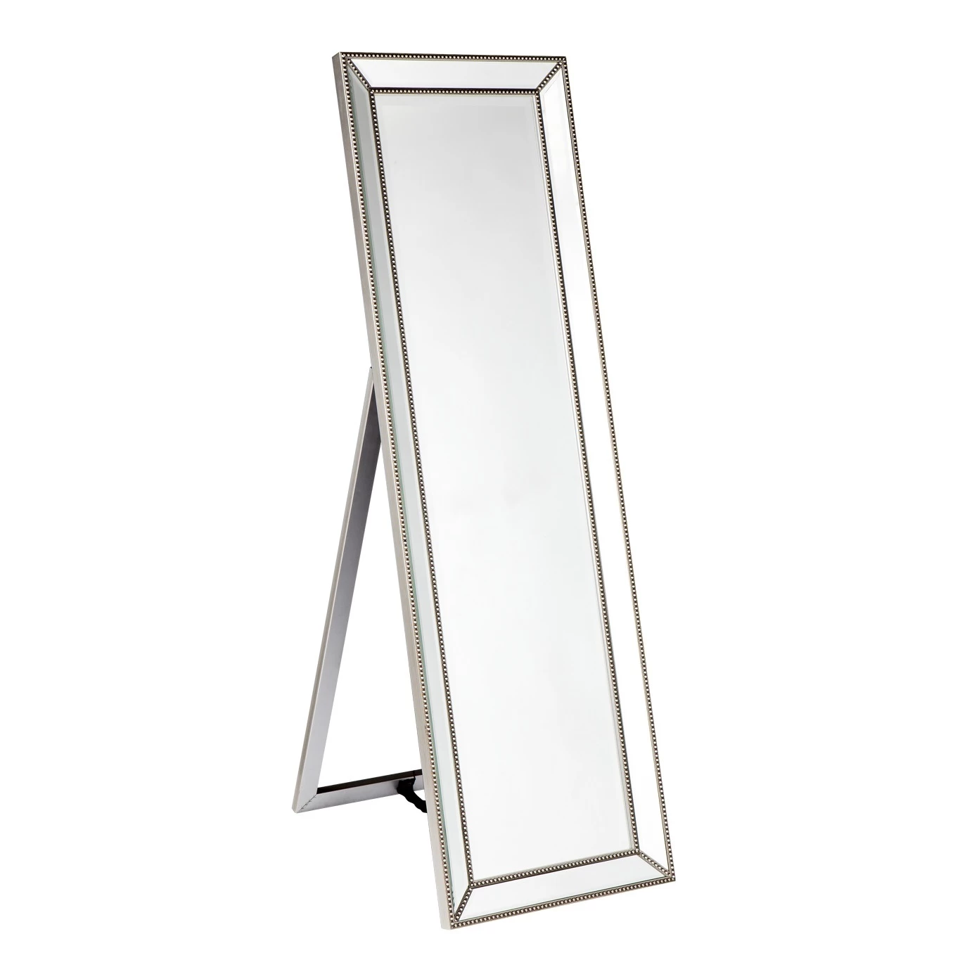 Polished and sleek in appearance, the Zanthia Cheval Mirror is a striking décor piece that can change the overall look of the room. This standing mirror comes with a 25mm bevelled edge which is adorned with a silver beaded frame. The corners of the mirror also have a bead pattern that provides a finishing look to it.